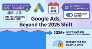 目次1 この記事の要約2 Google広告が検索・YouTubeのオーディエンスリストの最低要件を1,000人→100人に引き下げ3 なぜカスタマーマッチが重要なのか – Cookie規制 … 続きを読む Google広告 検索・YouTubeのオーディエンスリスト要件を100ユニークユーザーに緩和|カスタマーマッチ自動化で中小企業も本格活用へ