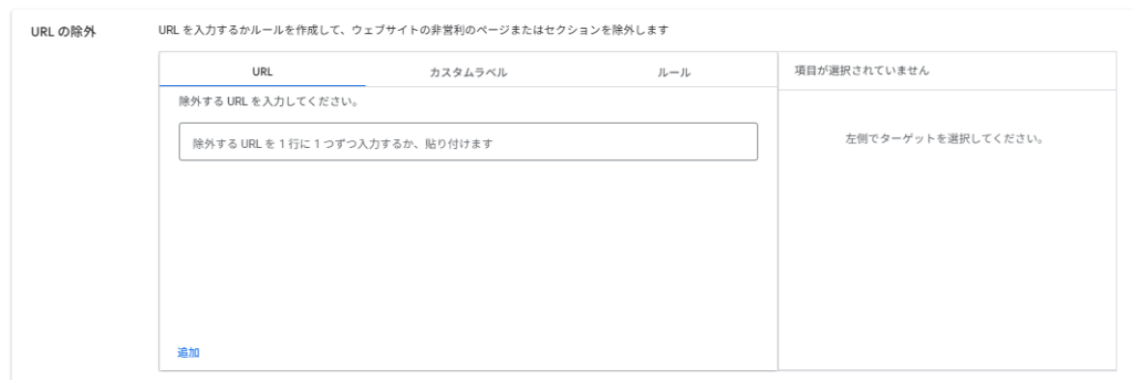 | URL | 除外または登録したいURLを1行に1つずつ入力または貼り付け |