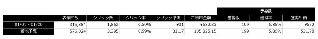 - 現在:合計予算¥1,543,111で1,527件獲得、平均CPA¥1,011