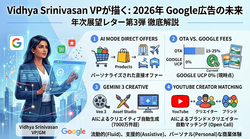 Google広告の2026年展望レターを読む:AI Mode「Direct Offers」、YouTube×クリエイター、Gemini 3が変える広告の未来